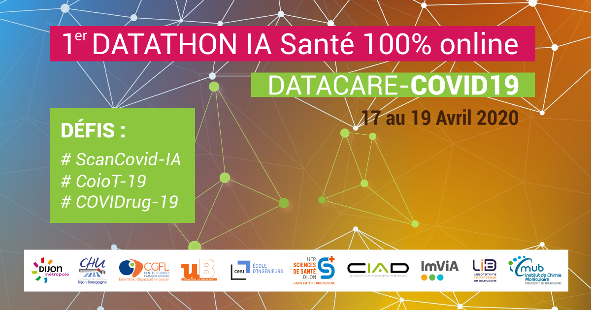 Les partenaires organisateurs Dijon Métropole, CHU Dijon-Bourgogne, CGFL, CESI Ecole d’Ingénieurs – Campus de Dijon et de Strasbourg, l’UFR Sciences de de santé, l’IUT Informatique de Dijon, la Direction du Numérique et 3 laboratoires d’informatique et sciences de la données CIAD, ImViA, LIB de l’Université de Bourgogne, proposent à la communauté des innovateurs en numérique santé de participer au Datathon DATACARE-COVID19 pour relever 3 défis afin de lutter contre la pandémie du Covid19 durant le week-end du 17 au 19 avril 2020 :