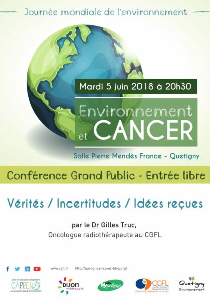 Organisée par l’association Quetigny Environnement et en partenariat avec le CGFL, cette conférence ouverte à tous sera guidée par le Dr Gilles Truc, oncologue radiothérapeute.