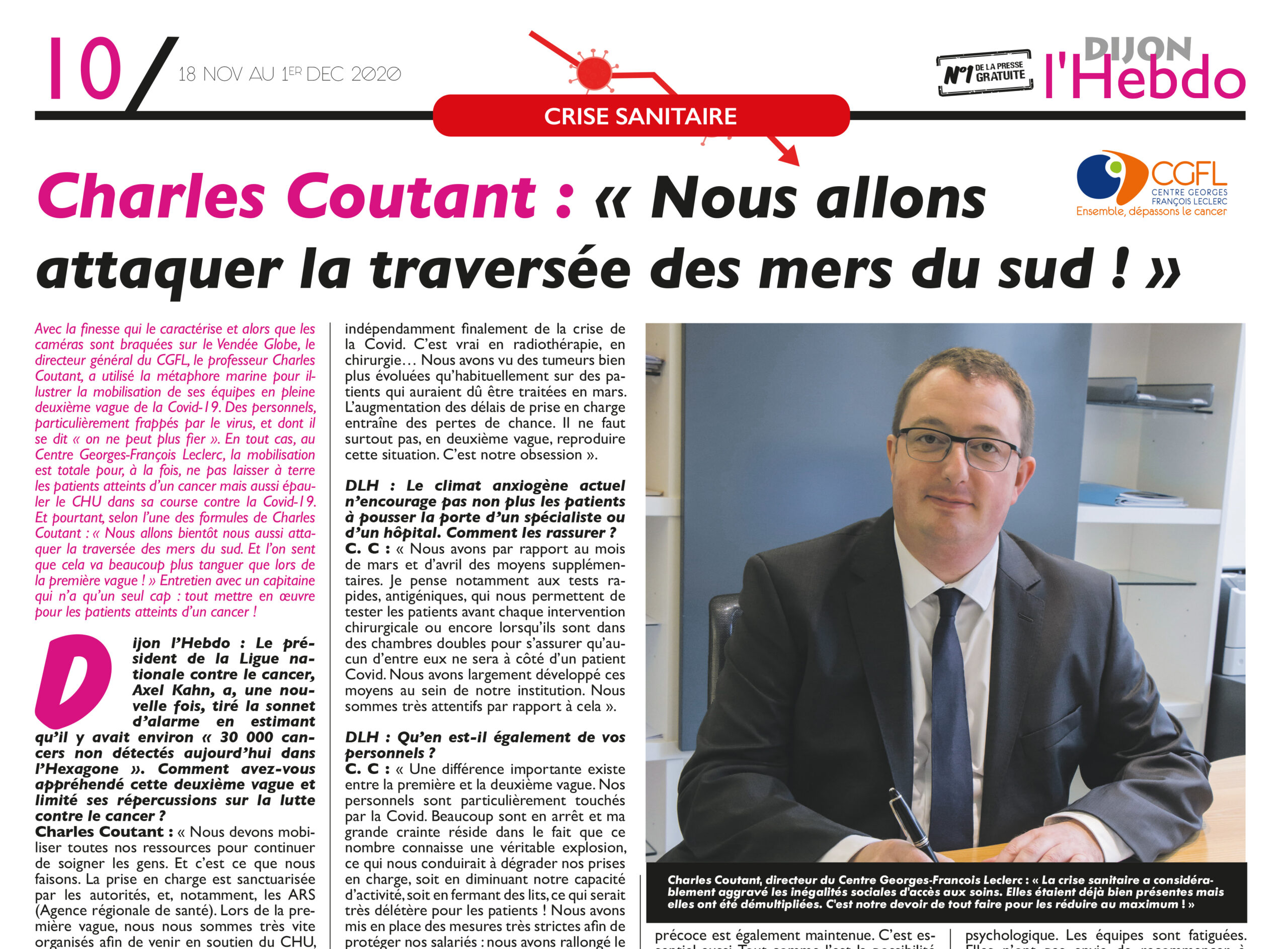 Une nouvelle interview du Pr Coutant dans le magazine Dijon l’Hebdo. Il revient sur la 2ème vague de la COVID19, la continuité de prise en charge des patients atteints de cancer et l’engagement sans faille du personnel de santé.